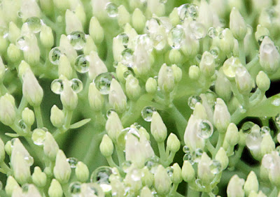 And here's another interesting photo that I took shortly after a rain shower. This particular plant was covered with hundreds of little water beads that glistened like tiny jewels. I think it's amazing how all those tiny little water beads can cling to the buds and not fall off.