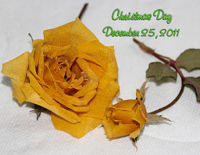 This morning, I will pluck my yellow rose from the bush, and bring it in to dry. I will save it with my most precious treasures. I am so thankful for this wonderful gift. This little rose has bloomed for more than a month, and has made it to Christmas Day. Awesome!!