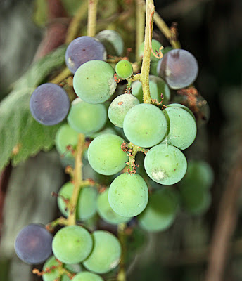 I also took a photo last week of the Mrs' grapes. They have been turning purple, and the birds are so delighted.