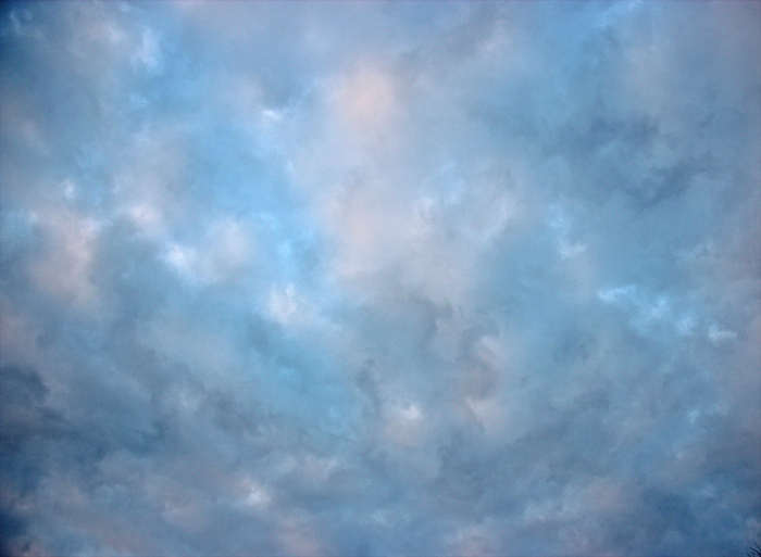 Have you ever taken the time to really look at the sky and the clouds? There is so much beauty there, and you can look at it all you want for free. Imagine that. Fabulously gorgeous art, and it's free. All you have to do is look up. Here's a photo of this morning's sky. Isn't this beautiful?